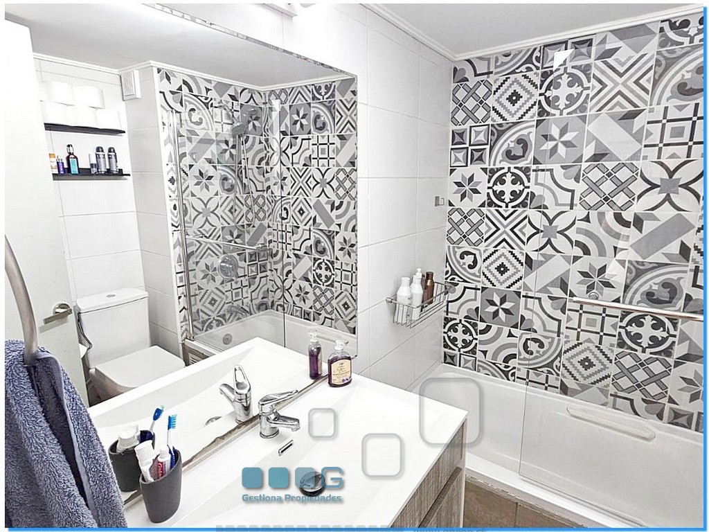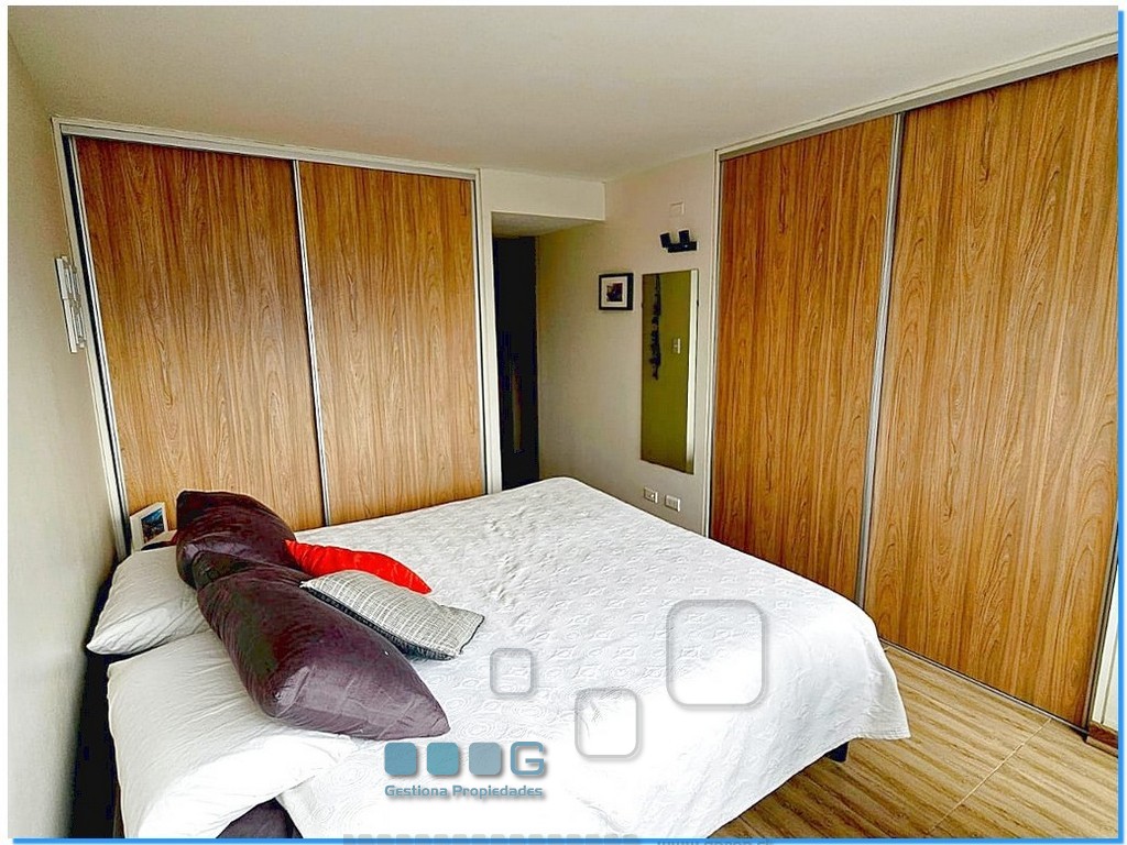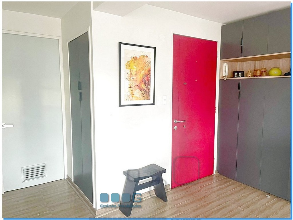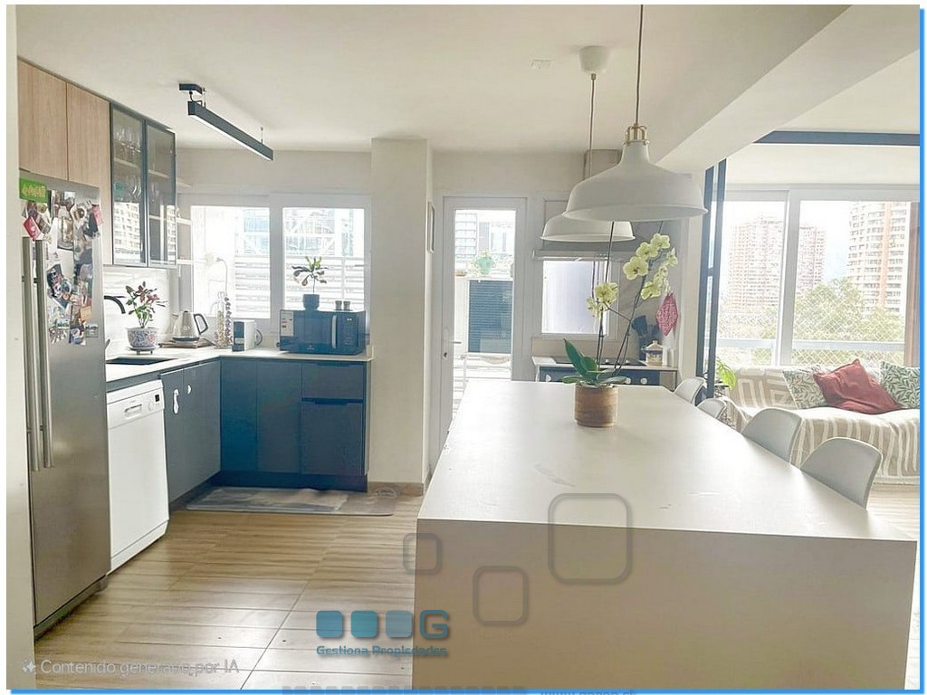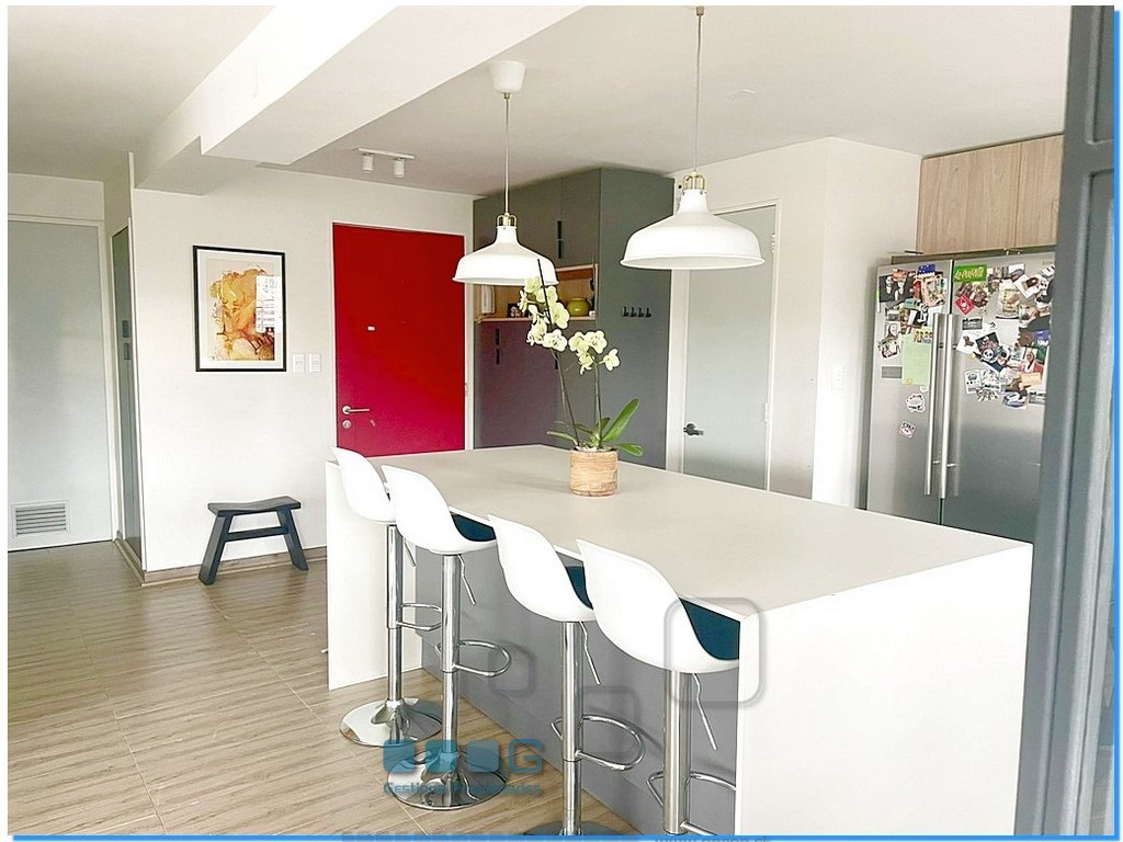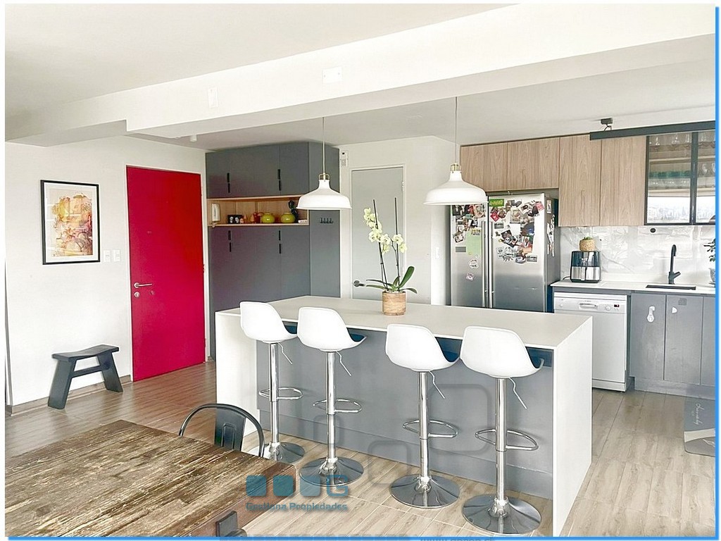 Hermoso y amplio departamento. Vista despejada, al nororiente. Amplios y luminosos recibos c/ cocina integrada. Logia. 2 amplios dormitorios con cortinas roller doble, Ppal.Suite. 2 baños. Aire acondicionado. Todo piso porcelanato. Estacionamiento, bodega