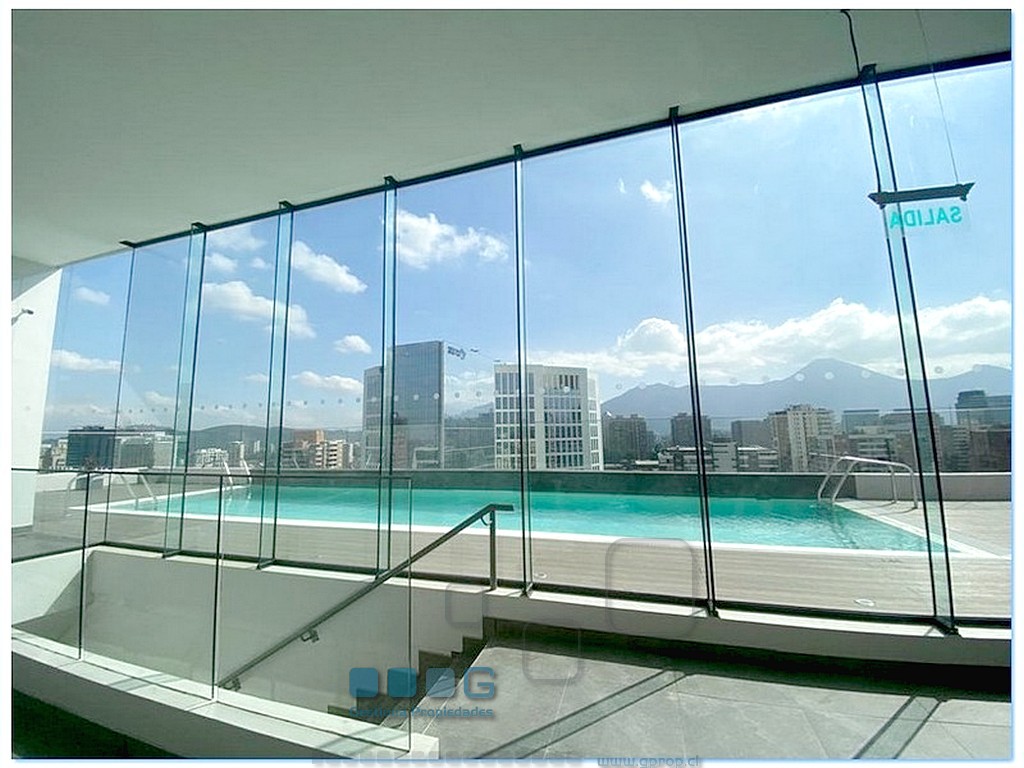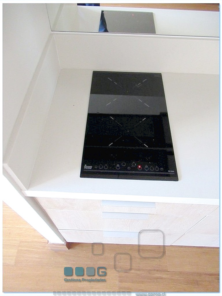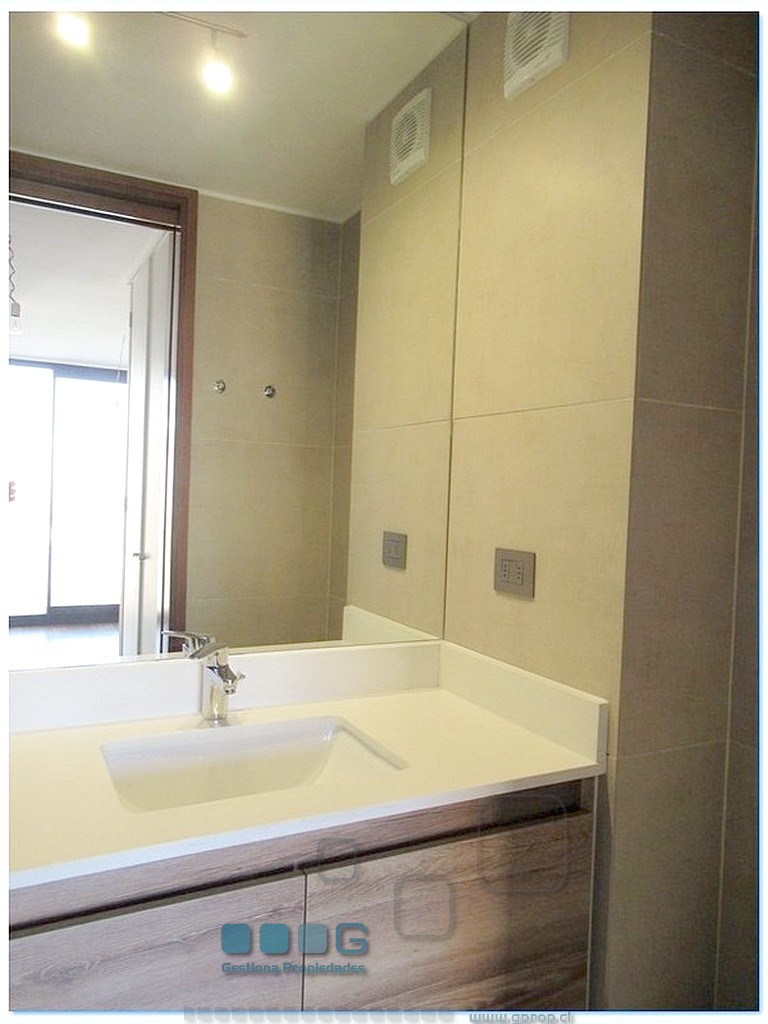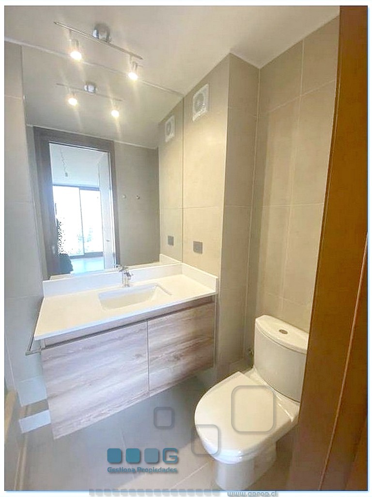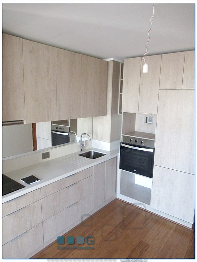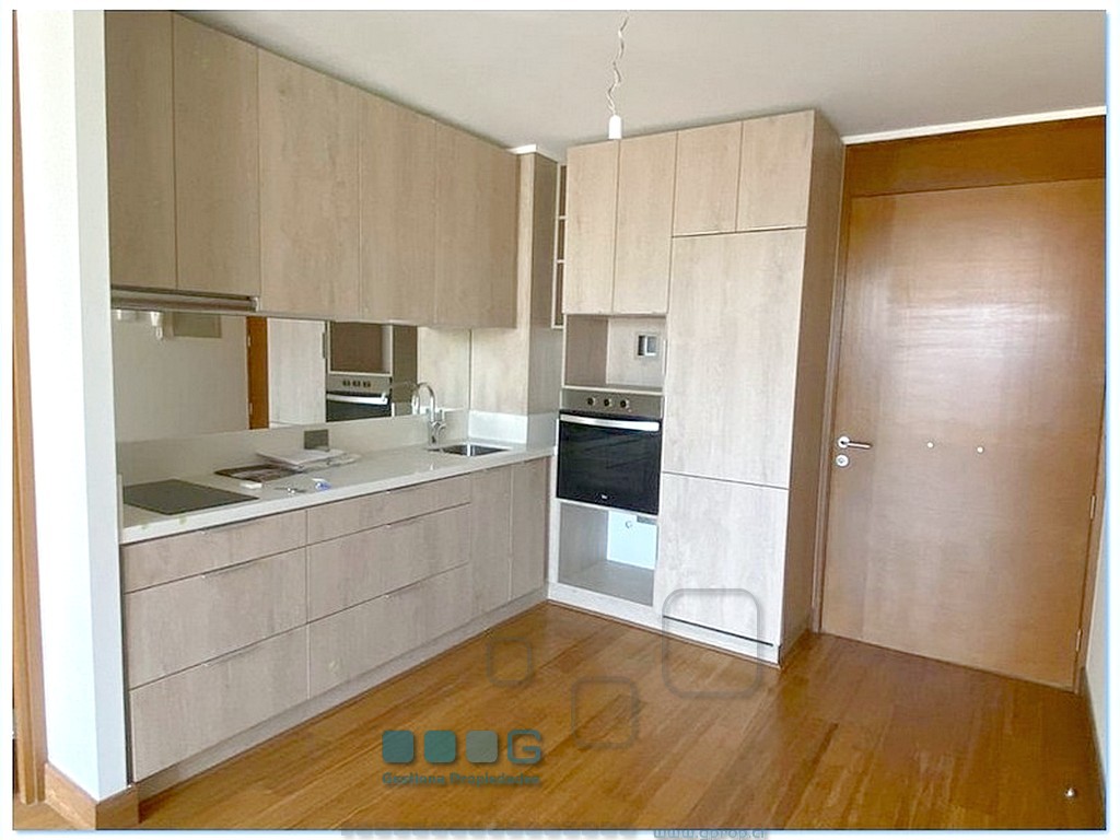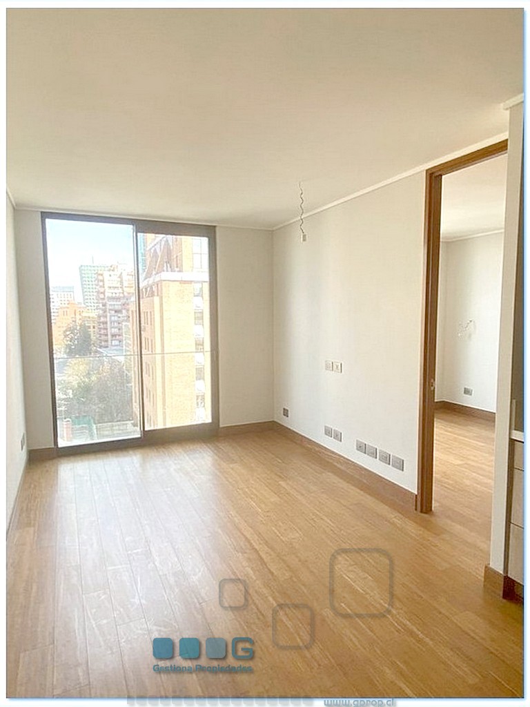 Recibos luminosos. Cocina americana equipada con : Refrigerador, encimera, horno, campana. Dormitorio, closet. Baño completo. Se entrega con Rollers y lámparas. Estacionamiento, bodega. Cercano estación metro Escuela Militar y a Estadio Español.