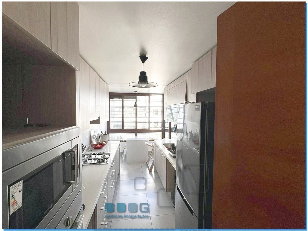 Precioso condominio. Recibos en L con salida a amplia terraza. 2 dormitorios, Ppal. Suite con aire acondicionado y terraza. 2 baños. Cocina tradicional equipada y c/ comedor diario, Logia. 2 Estacs. Bdga. Condominio con jardines, piscina, gimnasio