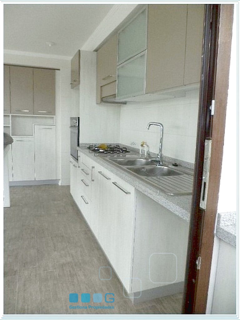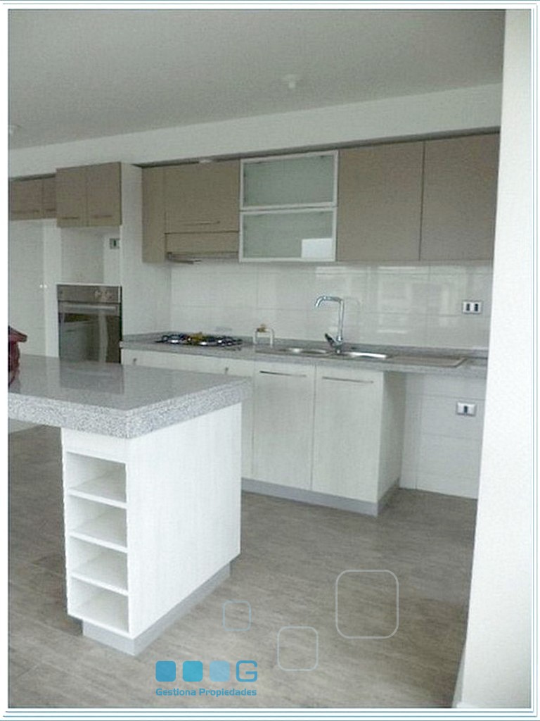 Hermosos recibos con amplia terraza y cocina integrada (family room), equipada con: encimera 4 platos, horno, campana, lavaplatos doble taza, gran isla. Logia. Dos dormitorios, Ppal. suite. 2 baños. Caldera. Estacionamiento. Bdga.