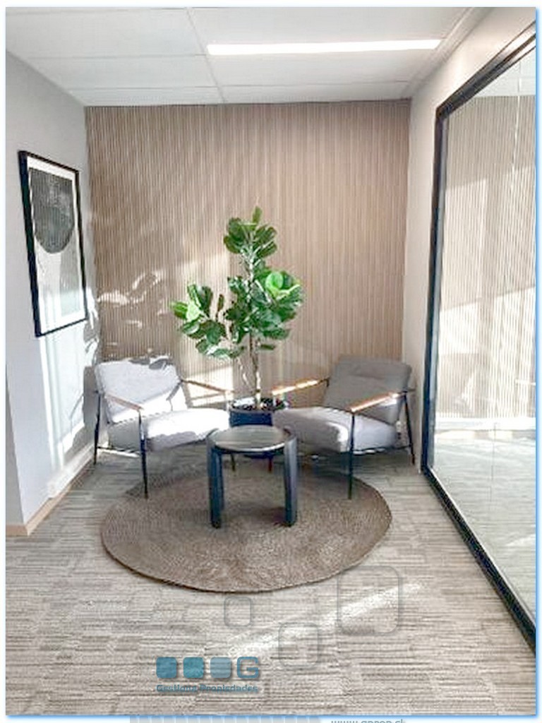 UF 47 más IVA. Full habilitada y amoblada. Recepción amplia, 2 privados. Sala de reunión. 1 baño. Kitchenette. Estacionamiento. Bodega . Alfombra, luminarias, chapa digital, papel mural, etc.). Edificio clase A.